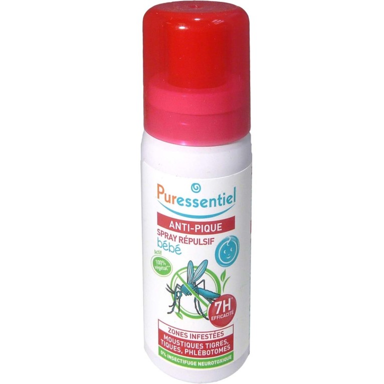 Anti-pique spray Bébé de PURESSENTIEL à prix discount dans votre parapharmacie en ligne, la solution naturelle et rapide pour éloigner les insectes piqueurs (moustiques, guêpes, abeilles, frelons, taons, tiques…) adapté aux bébés dès 6 mois. Zones tempérées et tropicales