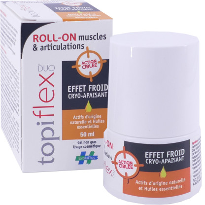 Le laboratoire EVOLUPHARM conçoit des produits d’hygiène, de bien-être, de soins, des compléments alimentaires et des médicaments. Nut’Exel Topiflex Duo Muscles & Articulations est un roll-on composé d’harpagophytum, arnica gaulthérie et saule aux vertus antalgiques, anti-inflammatoires, décontracturantes et apaisantes et de menthol, spécialement associées pour soulager les douleurs musculaires et articulaires rapidement et pour longtemps du corps (nuque, dos, poignet, cuisse, pieds,…). Ce roller à l’effet froid, utilisé en massage pour allier les bénéfices du produit à ceux du mouvement, libère ses actifs par pénétration épidermique et réduit rapidement l’intensité de la douleur. Il contient du menthol et du camphre pour procurer un effet froid instantané et ainsi calmer immédiatement la douleur Sa texture non grasse pénètre rapidement à l’application et son format permet un automassage pour un apaisement rapide. Testé sous contrôle dermatologique, Sans paraben