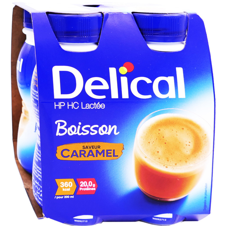 Delical Boisson HP HC Lactée discount des laboratoires LACTALIS, une boisson lactée diététique, pour les personnes suivant un régime de dénutrition protéino-énergétique et des troubles de l’alimentation dans votre parapharmacie en ligne à prix discount Goût Caramel