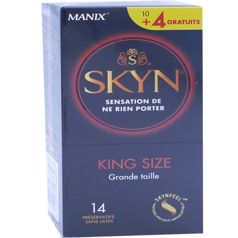 MANIX développe des préservatifs considérés comme les plus fins du monde et plébiscités de façon unanime pour leur confort, leur qualité et la sécurité qu’ils procurent. Le préservatif King Size en polyisoprène de grande taille, fait avec la dernière technologie Skynfeel (sans latex) adapté en cas d’allergie au latex, offre un plaisir très intense pour des sensations très fortes semblable à la résistance du latex et à un préservatif ultra-fin, et s’adapte parfaitement à la morphologie. Fins avec réservoir et lubrifié, le préservatif est facile à mettre en place pour une sensation de liberté en toute sécurité et des sensations intenses pour un effet « peau contre peau ».
