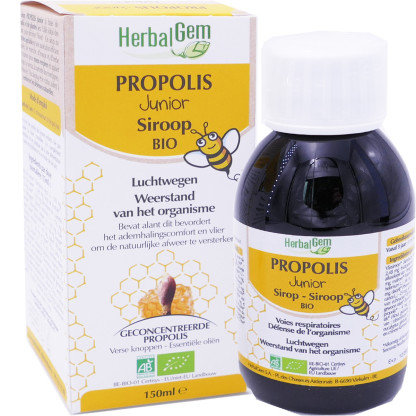 Sirop Propolis BIO Junior Voies Respiratoires, Défenses de l’organisme d'HERBALGEM, la gemmothérapie dans votre parapharmacie en ligne , dans ce complément alimentaire en sirop pour enfants, à prix discount.