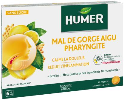 HUMER MAL DE GORGE AIGU 20 PASTILLES MIEL CITRON