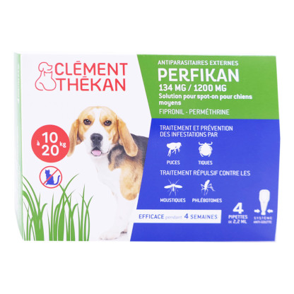 PERFIKAN de CLEMENT THEKAN à prix discount dans votre parapharmacie en ligne, les pipettes pour lutter contre les puces, les tiques, les moustiques et les phlébotomes chez les chiens moyens de 10 à 20kg et de plus de 12 semaines.