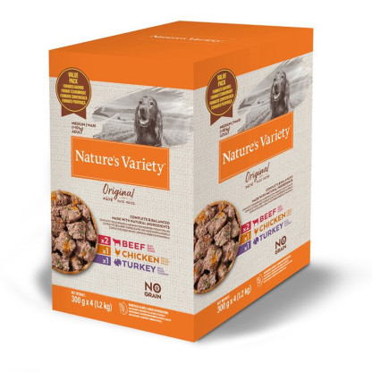 Découvrez le Nature's Variety Original Chien Adulte Multipack 4X300g, en vente en ligne sur le site de votre parapharmacie à prix discount. pour chiens adultes de taille moyenne à grande.