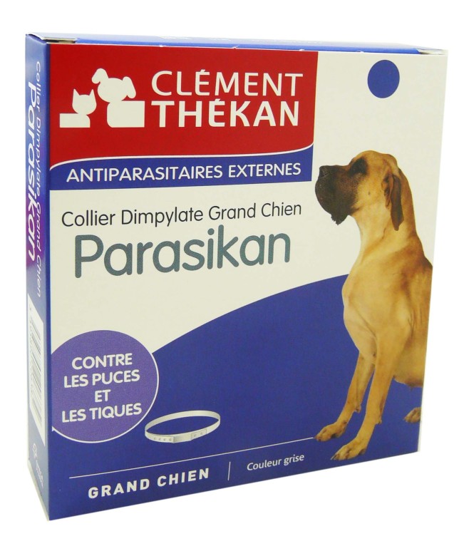 Le laboratoire CLEMENT THEKAN conçoit des produits et soins vétérinaires pour le bien-être des animaux de compagnie (shampooing, traitement puce anti-tique,…).Le collier tue les puces (Ctenocephalides felis) et les tiques, et protège de la ré-infestation pendant 300 jours pour les puces et 200 jours pour les tiques grâce à au Dimpylate (molécule de la famille des organophosphorés) qui empoisonnent les insectes et les élimine.