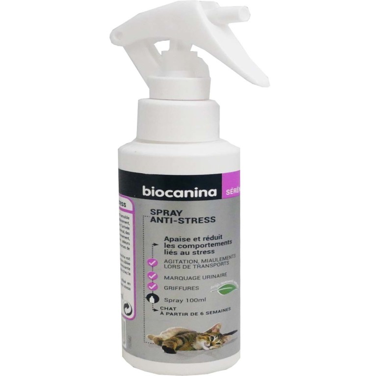 Le laboratoire BIOCANINA a conçu des produits de bien-être, antiparasitaires, hygiène, dermatologiques… spécialement formulés pour les chiens et les chats. Le Spray Anti-stress de BIOCANINA permet de créer un environnement apaisant et non stressant, où les chats se sentent bien, en délivrant des actifs naturels aux vertus apaisantes. Ainsi les chats peuvent avoir leur propre territoire et ne sont plus stressés.