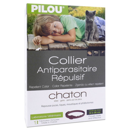 PILOU COLLIER ANTIPARASITAIRE RÉPULSIF CHATON est en vente en ligne sur le site de votre parapharmacie à prix discount, idéal pour repousser les parasites chez les chatons.