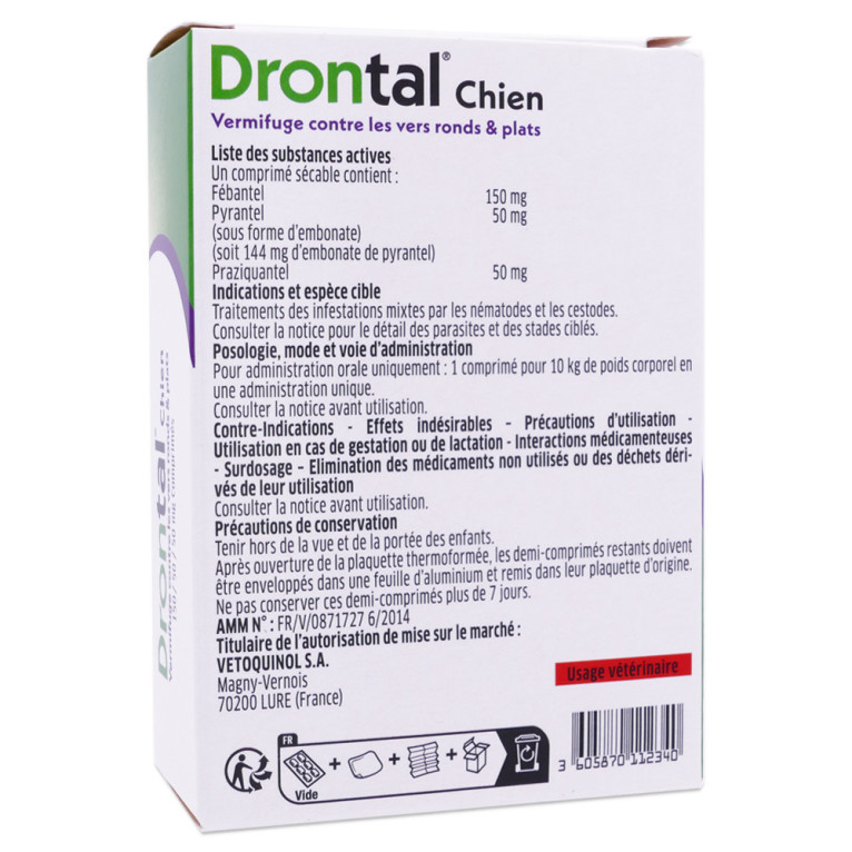DRONTAL VERMIFUGE CHIEN 4 COMPRIMÉS est disponible en vente en ligne à prix discount sur Pharmashopdiscount. Chiens à partir de 5 kg.