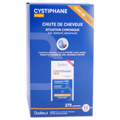 CYSTIPHANE ANAGEN CHUTE DE CHEVEUX 270 COMPRIMES est un complément alimentaire en vente en ligne, sur le site de votre parapharmacie à prix discount.