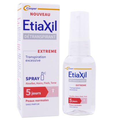 ETIAXIL DÉTRANSPIRANT EXTREME SPRAY 30ML est en vente en ligne sur le site de votre parapharmacie à prix discount, offrant une solution efficace pour la régulation de la transpiration excessive, idéal pour un usage quotidien.