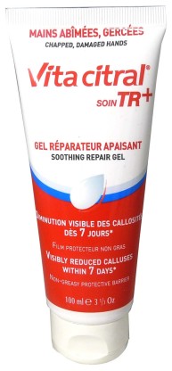 La gamme Vita citral des laboratoires ASEPTA est composée de produits protecteurs, ultra-hydratants et nourrissants pour les peaux desséchées. Le Soin TR+ est un gel qui répare la peau abîmée, irritée ou ayant des crevasses, protège, nourrit, hydrate intensément et apaise rapidement de tout inconfort (tiraillements, rougeurs) grâce à sa formule haute tolérance composée d’huile de macadamia, d’acide hyaluronique, d’aloès, d’allantoïne et de lipesters de soie. Sa texture pénètre rapidement à l’application sans laisser d’effet collant ou gras sur les mains. La peau retrouve son confort dès l’application et pour longtemps, elle est protégée, hydratée durablement, souple et très douce. Toutes les rugosités sont estompées.