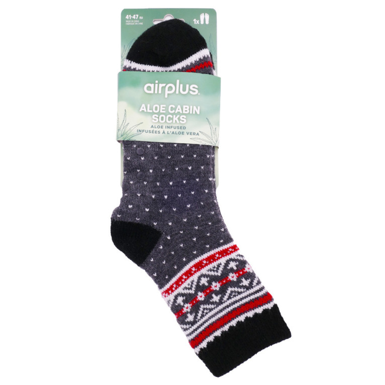 AIRPLUS ALOE CABIN CHAUSSETTES GRISE ROUGE 41-47 est en vente en ligne sur le site de votre parapharmacie à prix discount, offrant un confort optimal pour vos pieds grâce à leur doublure douce et hydratante, idéale pour un usage quotidien.
