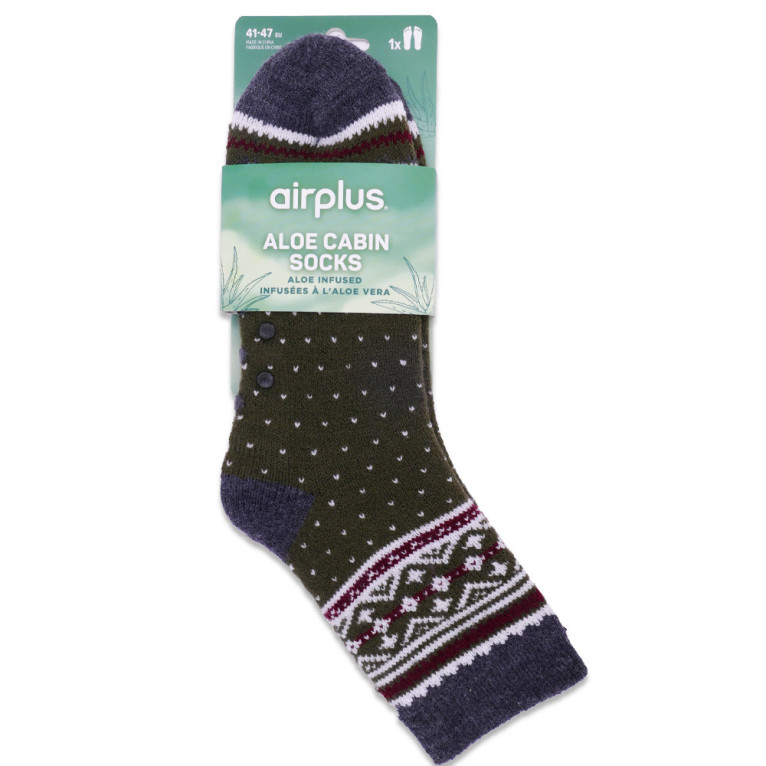 AIRPLUS ALOE CABIN CHAUSSETTES KAKI 41-47 est en vente en ligne sur le site de votre parapharmacie à prix discount, offrant un confort optimal pour vos pieds grâce à leur doublure douce et hydratante, idéale pour un usage quotidien