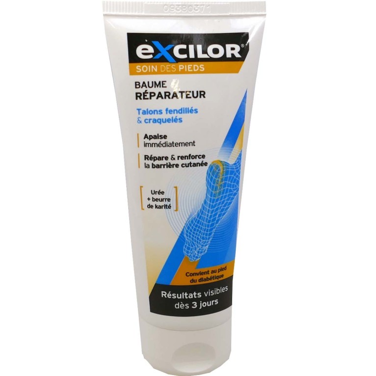 Le Baume réparateur Talons fendillés & craquelés EXCILOR discount, le soin réparateur et apaisant dans votre parapharmacie en ligne à prix discount, qui redonne aux talons secs avec fendillements et fissures une grande douceur en seulement 3 jours, convient aux pieds diabétiques.