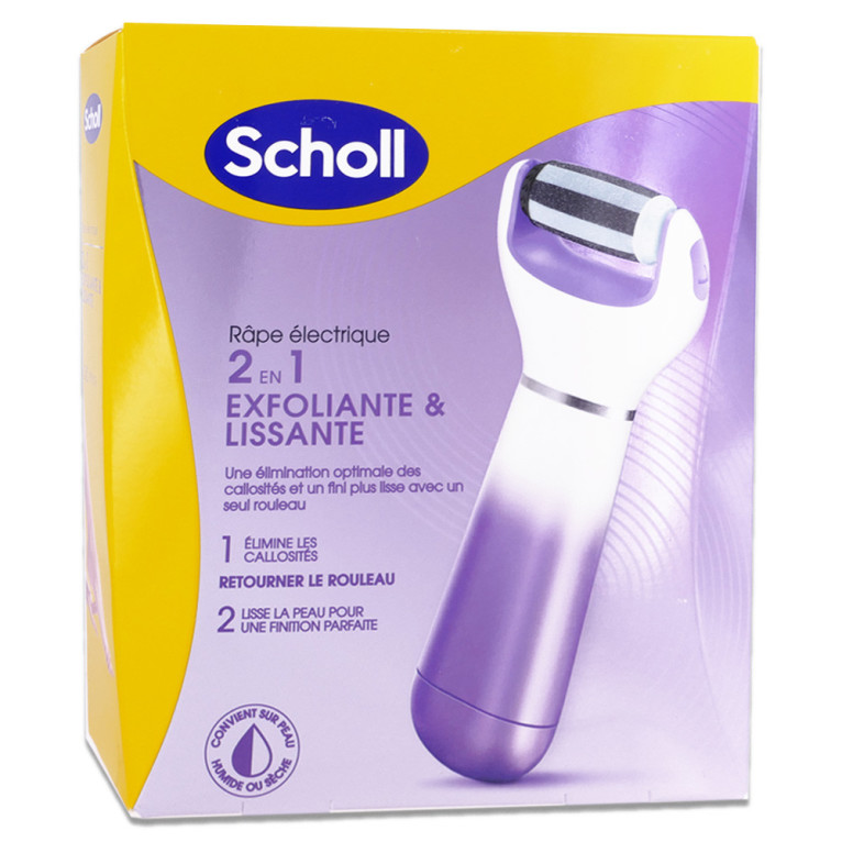 Depuis plus d’un siècle, la marque Scholl propose des produits alliant efficacité, technologie, confort et esthétique pour améliorer la santé des consommateurs en prenant soin de leurs pieds. La râpe électrique composée d’un rouleau avec des microparticules de diamant de synthèse aux propriétés exfoliantes, élimine les peaux épaisses et mortes de la peau sous les pieds. Sans danger, elle possède un cran de sécurité. Elle agit par mouvements réguliers pour éliminer la totalité des callosités par une pression manuelle sur la râpe légère à moyenne. La forme du manche permet de tenir sans difficulté la râpe électrique pour une utilisation confortable. En quelques minutes la peau morte est éliminée, les pieds sont lisses, et retrouvent toute leur douceur et leur souplesse. Fonctionne avec des piles incluses avec la râpe.