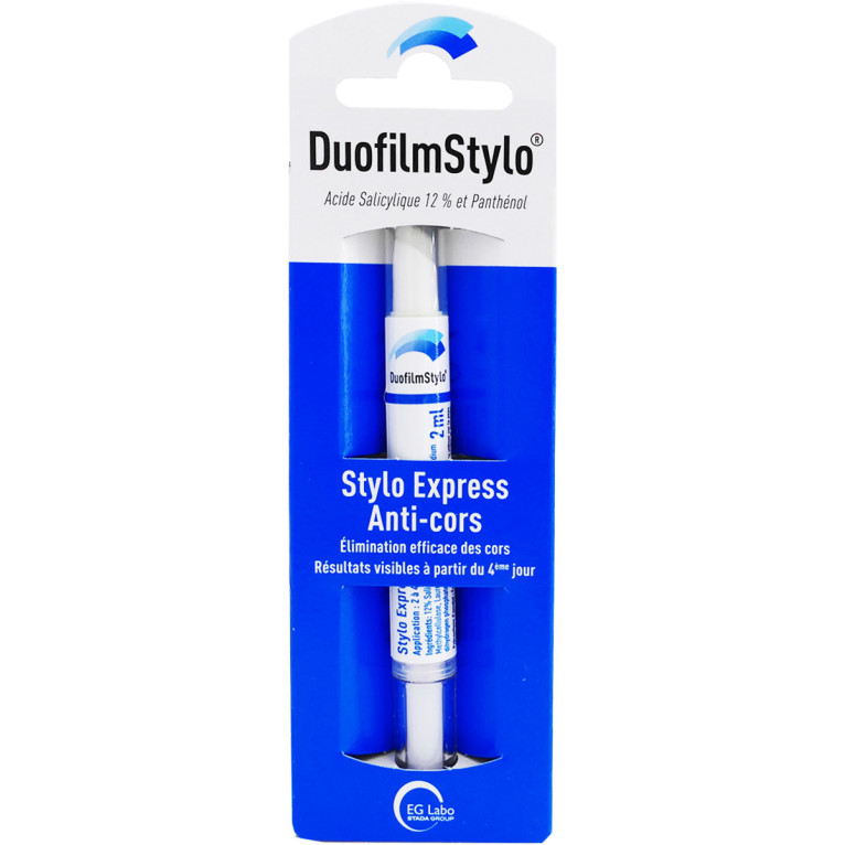 Mode d'emploi : Avant chaque utilisation, tourner l'extrémité du stylo jusqu'à faire apparaître le concentré anti-cors sur l'applicateur. Appliquer une fine couche de Duofilm Stylo Express Anti-Cors sur la zone concernée, 2 fois par jour, sans dépasser 4 applications par jour.