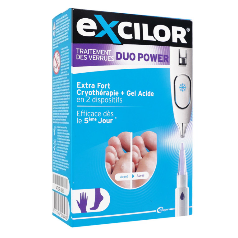 EXCILOR TRAITEMENT DES VERRUES DUO POWER en vente en ligne, sur le site de votre parapharmacie à prix discount, est un duo de stylos cryothérapie et gel-acide pour éliminer efficacement les verrues.