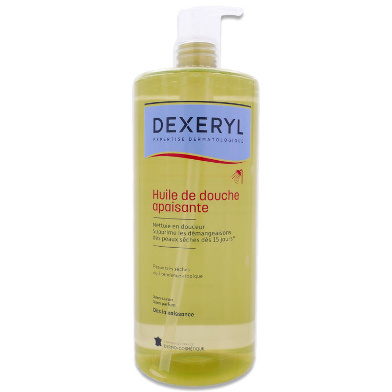 DEXERYL HUILE DE DOUCHE APAISANTE 1L est en vente en ligne sur le site de votre parapharmacie à prix discount, offrant une expérience de douche douce et apaisante pour les peaux sensibles.