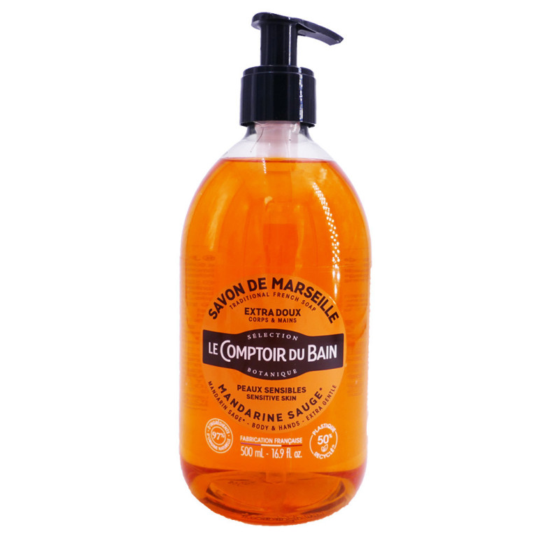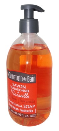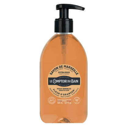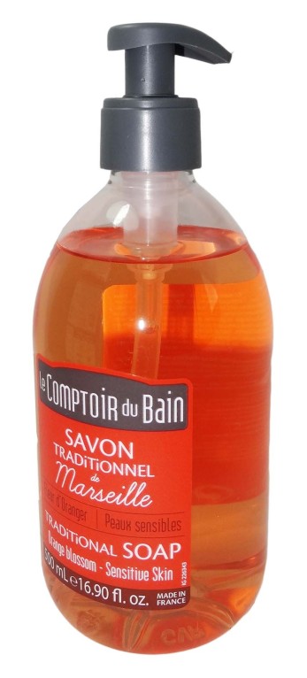 Le savon traditionnel liquide de Marseille du Comptoir du Bain, tradition et bien-être dans un savon qui offre douceur au corps et plaisir des sens, parfum fleur d’oranger.
