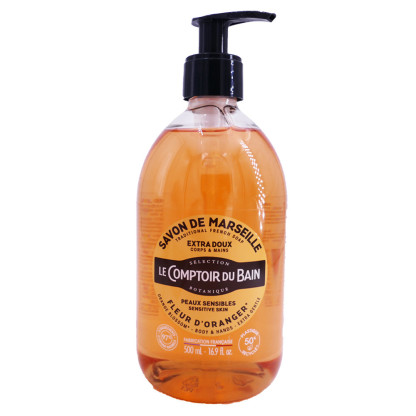 Le Comptoir du Bain, n°1 des savons liquides en pharmacie, développe des produits « made in France », issus du savoir-faire authentique d’un maître savonnier et d’un parfumeur à Grasse, aux couleurs acidulées et aux parfums tendances, raffinés ou gourmands, pour offrir bien-être et plaisir au quotidien. Les savons traditionnels de Marseille liquides du Comptoir du bain ont une base issue de la saponification d’huiles végétales naturelle. Ils sont si doux qu’ils peuvent être utilisées par les peaux les plus sensibles pour laver les mains ou le corps. Sans conservateur. Sans graisse animales Sans sulfate. Découvrez la douceur suave et raffinée de la Fleur d’Oranger.