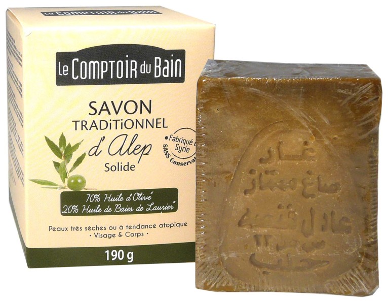 Les premiers savons au monde auraient été fabriqués à Alep, ville de Syrie parmi les plus anciennes habitées au monde. Le véritable savon d’Alep reste fabriqué à Alep selon la méthode traditionnelle et artisanale, demeurée identique depuis la nuit des temps et transmise secrètement de père en fils. Ce savon associe la tradition ancestrale aux exigences strictes des normes européennes de la dermo-cosmétique pour offrir un produit sain, naturel, et d’une grande tolérance pour la peau. Formulé à base d’huile d’olive et d’huile de baies de laurier, le savon D’Alep nourrit et restaure le film hydrolipidique cutané pour offrir protection confort et douceur à la peau.