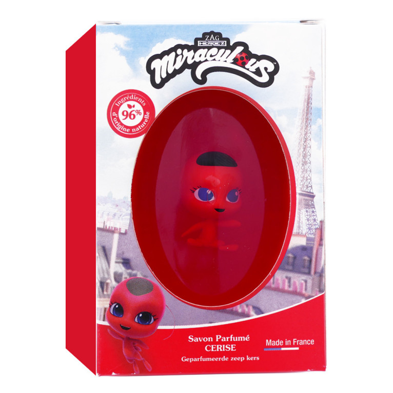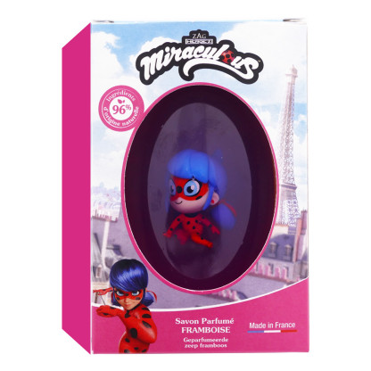 La figurine Miraculous incluse dans le savon en fait un produit ludique et idéal pour les enfants. Offrez-vous un moment de détente et de douceur avec ce savon original et parfumé, parfait pour un cadeau ou pour se faire plaisir.