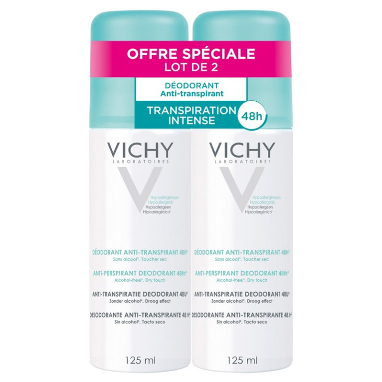 VICHY DEODORANT ANTI TRANSPIRANT 48H AEROSOL 125ML LOT DE 2
