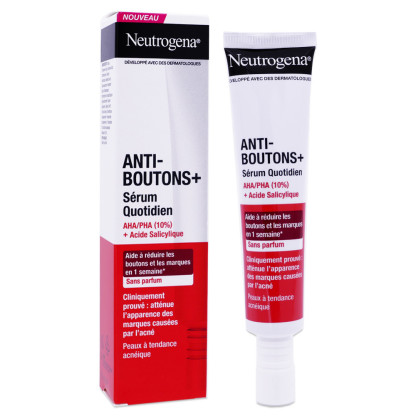 NEUTROGENA ANTI-BOUTONS+ SERUM QUOTIDIEN 30ML est disponible en vente en ligne à prix discount sur Pharmashopdiscount.