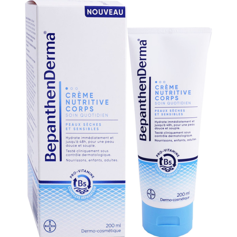 Appliquer BepanthenDerma® Crème Nutritive Corps sur l’ensemble du corps autant de fois que nécessaire. En complément nous vous recommandons d'utiliser sous la douche le Gel Lavant Doux BepanthenDerma®.Ne pas utiliser en cas d'allergie connue à l'un des ingrédients.