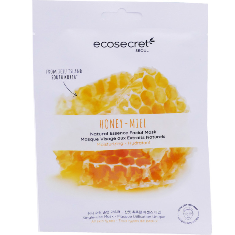 La marque ECO SECRET SEOUL d’origine coréenne, propose des produits inspirés de la tradition coréenne, gorgé d’essences d’origine naturelle, pour des résultats remarquables sur la peau. Les masques au conditionnement individuel en coton adhèrent parfaitement à la forme du visage pour des soins confort. Le Masque Visage au Miel de Jeju à usage unique, est riche en extrait de miel, acétate de tocophérol et en acide hyaluronique aux vertus hydratantes. Il va protéger la peau des agressions, intensément hydrater en profondeur, et adoucir. Dès la première utilisation, la peau est douce, réconfortée et souple.