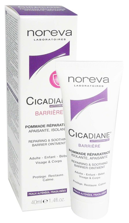 La gamme Cicadiane de NOREVA est composée de soins réparateurs et apaisants pour les peaux fragiles et altérées. La pommade réparatrice apaisante barrière Cicabiane de NOREVA composée d’acide hyaluronique BPM et de poids moléculaire contrôlé et spécifique, de dermaseptine AG+, de zéméa, de glycérine, ainsi que d’agents hydratants et filmogènes, répare en accélérant la cicatrisation, protège la peau en reformant le film protecteur pour lutter contre la prolifération des bactéries et assurer une cicatrice esthétique, hydrate intensément, et calme de tout inconfort dès la première application. Non occlusive et de haute tolérance, la crème forme sur la peau un bouclier pour une lésion qui cicatrise rapidement. Après le soin, la peau retrouve tout son confort, et est apaisée pour longtemps.