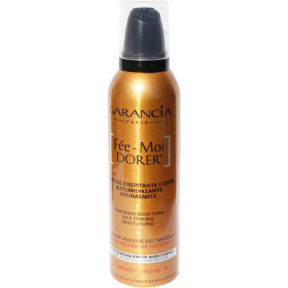 GARANCIA développe des produits dermo-cosmétiques uniques, qui allient ingrédients botaniques traditionnels, nouvelles technologies, rituels de beauté modernes et anciens, pour offrir aux femmes exigeantes des soins d’une rare efficacité, enveloppés d’un univers de magie. Fée-moi Dorer Mousse crépitante, est une mousse autobrozante et hydratante qui permet d’avoir un hâle progressif naturel. Cette Mousse crépitante est composée du complexe Crépibronz®, qui regroupe du DHA végétale, des sucres végétaux et des esters de Jojoba. Une formule issue à 98% d’ingrédients d'origine naturelle à la texture toucher velours sec qui va pénétrer efficacement et va laisser une peau toute douce, dorée et intensément hydratée. NE PROTEGE PAS DES UV.
