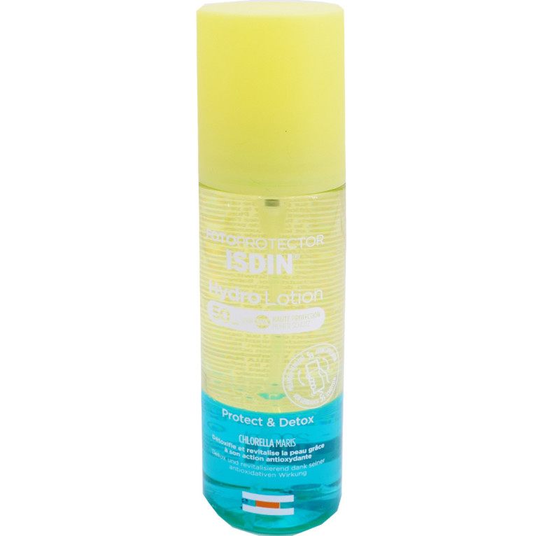 Fotoprotector HydrOLotion SPF50+ du laboratoire ISDIN discount, un soin 2 en 1 biphasé dans votre parapharmacie en ligne à prix discount, qui protège très efficacement (SPF50+) tous les types de peaux même sensibles du soleil et oxygène la peau.