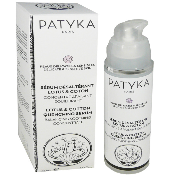 Le laboratoire PATYKA conçoit des produits cosmétiques naturels et bio qui ne contienne ni ingrédients chimiques ou d’origine animale, ni parfum de synthèse et colorant de synthèse ni conservateurs, pour le respect de la peau de toutes les femmes. A base d’extraits naturels de plantes et d’actifs biotechnologiques, les soins révèleront toute la beauté de la peau de chaque femme ! Le Sérum désaltérant Lotus & Coton de PATYKA, est un soin expert hautement hydratant et protecteur, formulé pour calmer les inconforts cutanés (échauffements, irritations,…), hydrater en profondeur l’épiderme, et raviver l’éclat du visage. Ce Sérum désaltérant Lotus & Coton contient un complexe végétal SENSIDEFENSE (pépins de cassis, Cœur des Indes) anti irritant et antiinflammatoire, un extrait de lotus sacré (riche en phénols) antioxydant et apaisant, et un extrait de coton blanc hydratant et adoucissant, pour des résultats remarquables sur le visage. Il va redonner de la vitalité à la peau, protéger en renforçant ses défenses naturelles, hydrater intensément en formant un film protecteur à la surface de la peau pour limiter la perte en eau, et apaiser de tout inconforts, échauffements, rougeurs, tiraillements. A la texture fraiche et légère, le sérum laissera la peau très douce. Instantanément, la peau est réconfortée, souple et revitalisée, le visage retrouve son éclat.